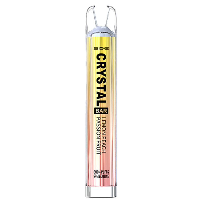 The Lemon Peach Passion Fruit SKE Crystal Bar disposable vape will easily slip into your pocket thanks to its lightweight build and small size, meaning you can take it with you wherever you go. No need to worry about maintenance, because it’s designed to be replaced with a new one when finished. There’s 2ml of e-liquid inside of each SKE Crystal Bar device, which delivers up to 600 puffs – outlasting 20 cigarettes.