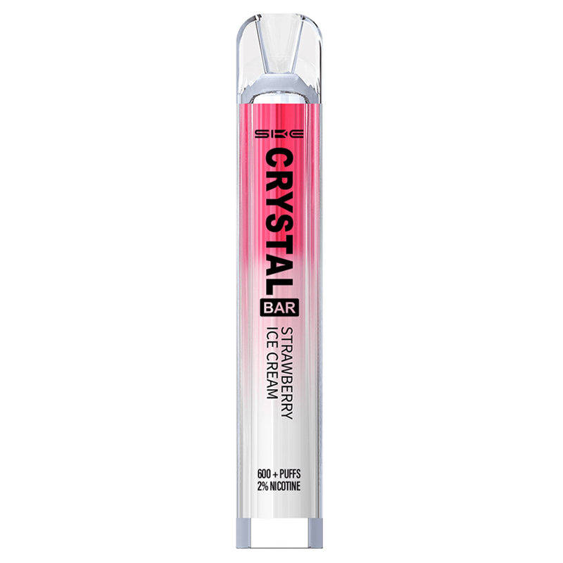 The Strawberry Ice Cream SKE Crystal Bar disposable vape will easily slip into your pocket thanks to its lightweight build and small size, meaning you can take it with you wherever you go. No need to worry about maintenance, because it’s designed to be replaced with a new one when finished. There’s 2ml of e-liquid inside of each SKE Crystal Bar device, which delivers up to 600 puffs – outlasting 20 cigarettes.